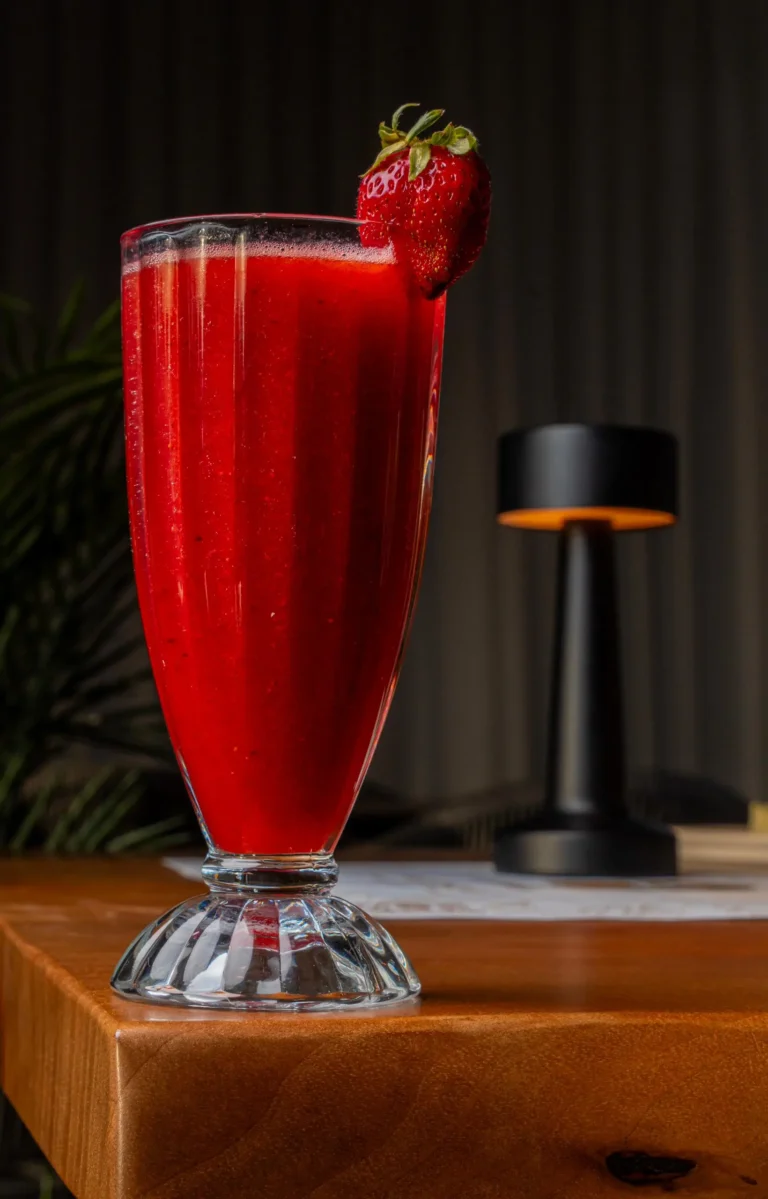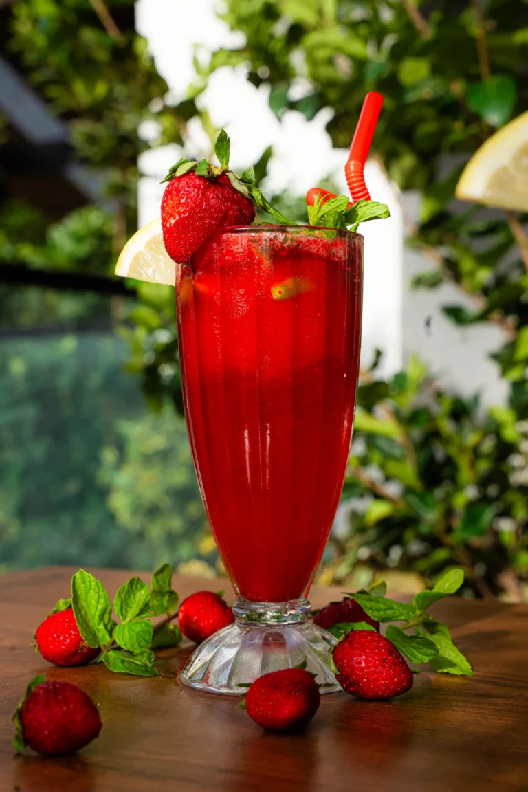A refreshing mix of ripe strawberries, fresh mint, lime, and hint of sweetness